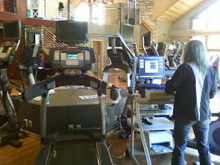 | The treadmill and Dina setting up the metabolic cart |