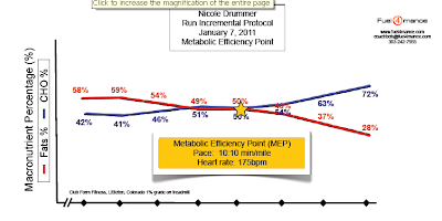 Today I got a Metabolic Efficiency Test with Bob Seebohar and Dina Griffin of Fuel4mance. Let me recap the background on why I did this. I recently started focusing on my metabolic efficiency because I will be training for 2011 Ironman Arizona. December 1st I embarked on a study with some help from the book Metabolic Efficiency Training, TrainingPeaks, and Kelly Ping, RD, at the UCCS Peak Nutrition Clinic. You can find the results of my 3 week study here. With positive results, testing was the next logical step to see some real physiological numbers to help dial in my training. So here’s a brief summary of the test and my results.
